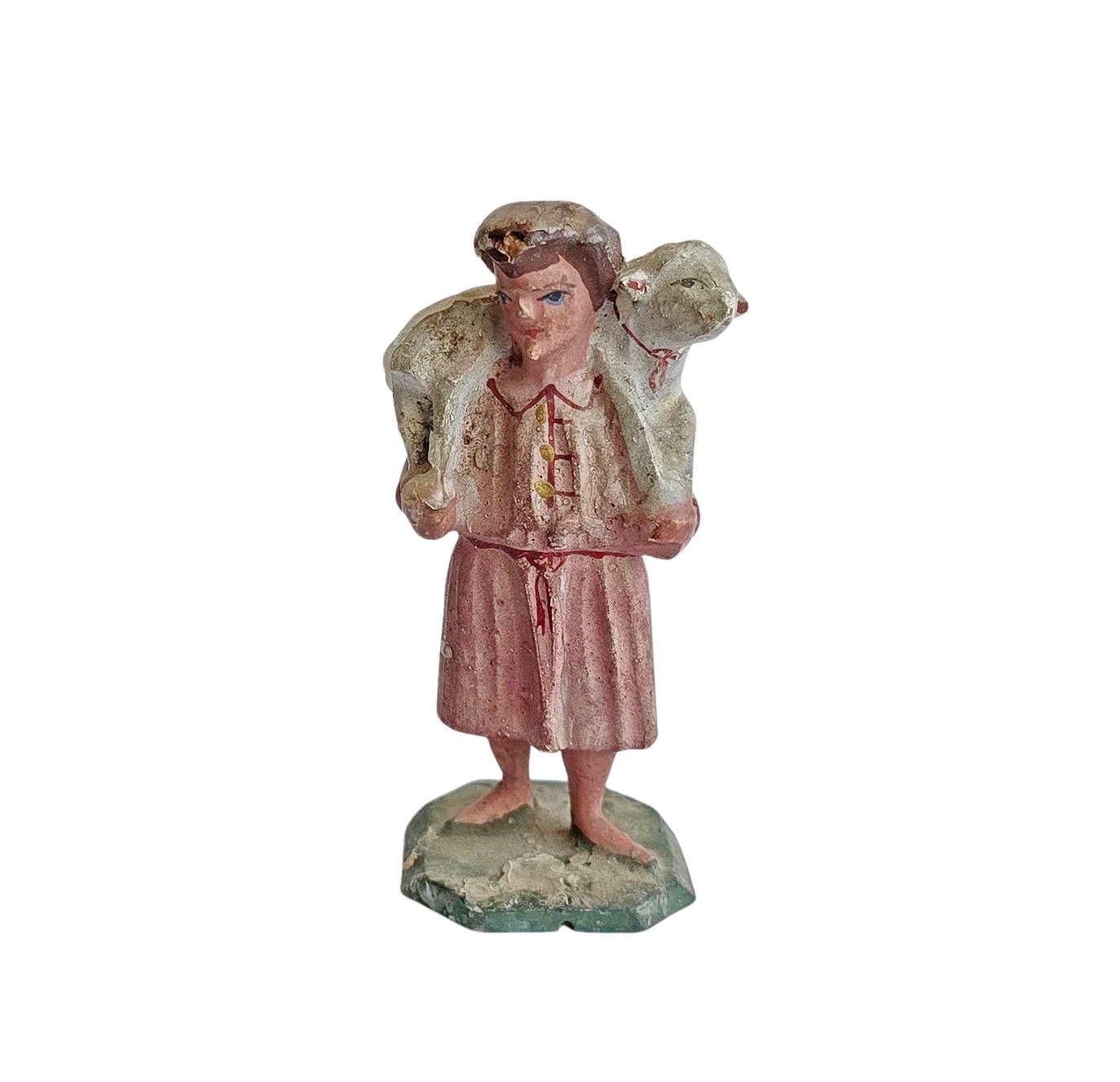 Diese außergewöhnliche, sehr seltene Grulicher Holzfigur zeigt einen Hirten mit Schaf. Das kunstvolle Handwerk und die authentische Gestaltung machen sie zu einem einzigartigen Sammlerstück. Garantiert alt, keine Reproduktion – ein echtes Unikat aus der Zeit um 1900. Perfekt für eine hochwertige Sammlung oder als besonderes Dekorationsstück.