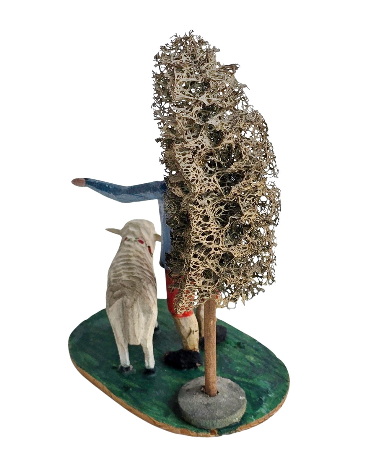 Diese außergewöhnliche, sehr seltene Grulicher Holzfigur zeigt einen Hirten mit Schaf und Luffa Baum. Das kunstvolle Handwerk und die authentische Gestaltung machen sie zu einem einzigartigen Sammlerstück. Garantiert alt, keine Reproduktion – ein echtes Unikat aus der Zeit um 1900. Perfekt für eine hochwertige Sammlung oder als besonderes Dekorationsstück.