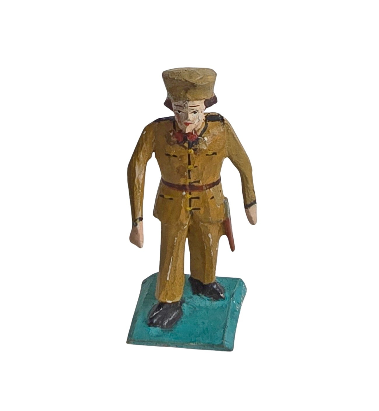 Diese außergewöhnliche, sehr seltene Grulicher Holzfigur zeigt einen Soldat. Das kunstvolle Handwerk und die authentische Gestaltung machen ihn zu einem einzigartigen Sammlerstück. Garantiert alt, keine Reproduktion – ein echtes Unikat aus der Zeit um 1920. Perfekt für eine hochwertige Sammlung oder als besonderes Dekorationsstück.