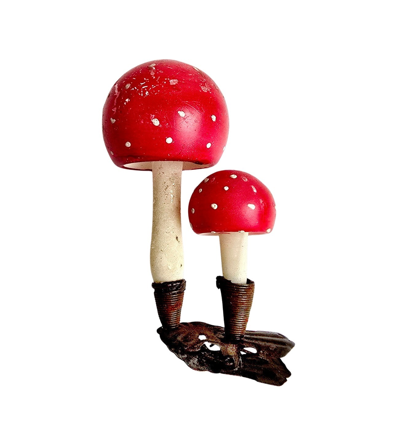 Dieser außergewöhnliche, sehr seltene Christbaumschmuck aus Lauscha zeigt 2 Fliegenpilze auf Zwicker. Das kunstvolle Handwerk und die authentische Gestaltung machen sie zu einem einzigartigen Sammlerstück. Garantiert alt, keine Reproduktion – ein echtes Unikat aus der Zeit um 1920. Perfekt für eine hochwertige Sammlung oder als besonderes Dekorationsstück.
