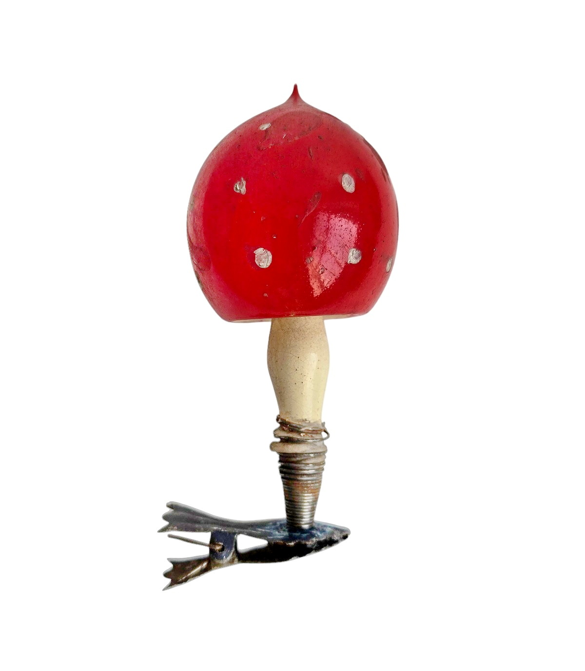 Dieser außergewöhnliche, sehr seltene Christbaumschmuck aus Lauscha zeigt einen Fliegenpilz auf Zwicker. Das kunstvolle Handwerk und die authentische Gestaltung machen ihn zu einem einzigartigen Sammlerstück. Garantiert alt, keine Reproduktion – ein echtes Unikat aus der Zeit um 1920. Perfekt für eine hochwertige Sammlung oder als besonderes Dekorationsstück.