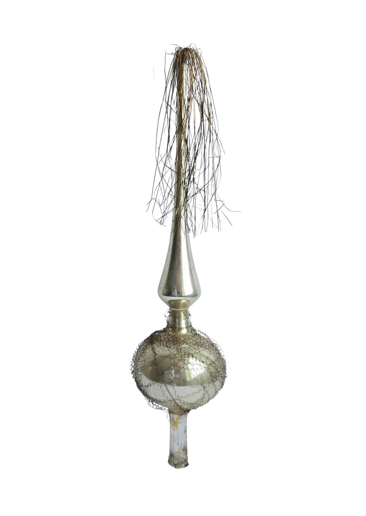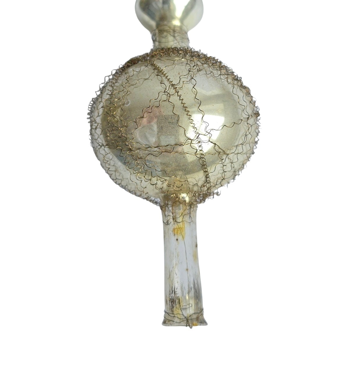 Dieser außergewöhnliche Christbaumschmuck aus Lauscha zeigt eine Christbaumspitze mit leonischen Drähten. Das kunstvolle Handwerk und die authentische Gestaltung machen sie zu einem einzigartigen Sammlerstück. Garantiert alt, keine Reproduktion – ein echtes Unikat aus der Zeit um 1930. Perfekt für eine hochwertige Sammlung oder als besonderes Dekorationsstück.