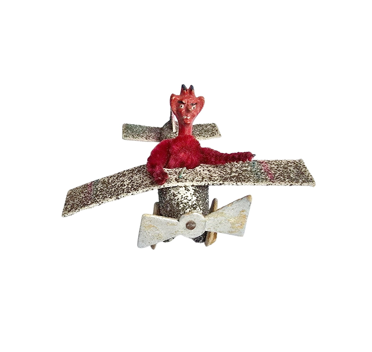 Dieser außergewöhnliche, sehr seltene Christbaumschmuck zeigt ein Flugzeug mit Krampus. Das kunstvolle Handwerk und die authentische Gestaltung machen es zu einem einzigartigen Sammlerstück. Garantiert alt, keine Reproduktion – ein echtes Unikat aus der Zeit um 1930. Perfekt für eine hochwertige Sammlung oder als besonderes Dekorationsstück.