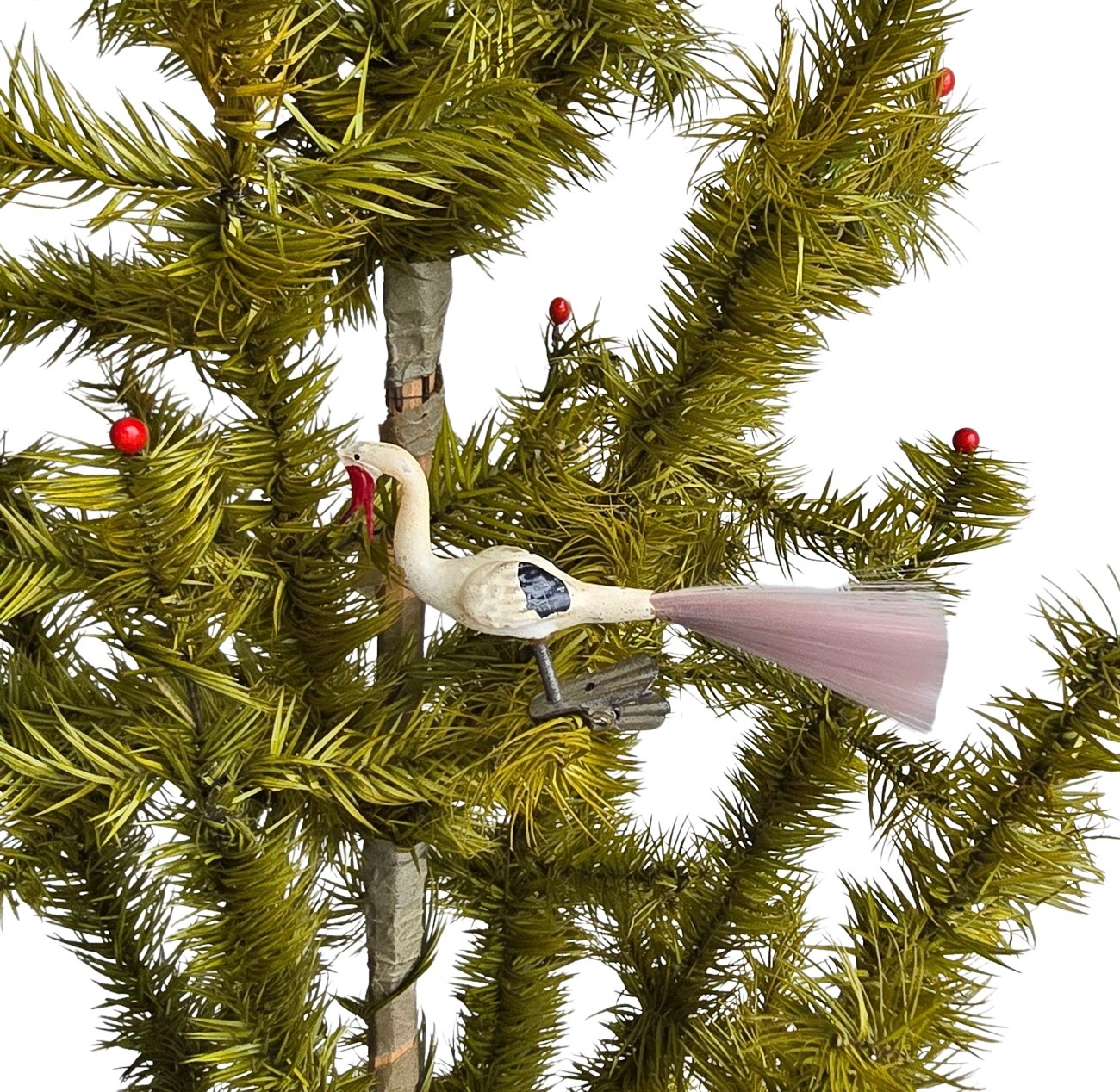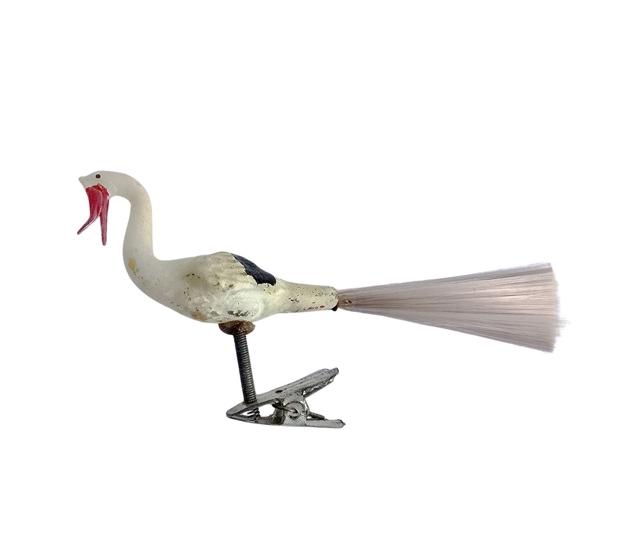 Glasornament, Storch / Vogel auf Zwicker, um 1930