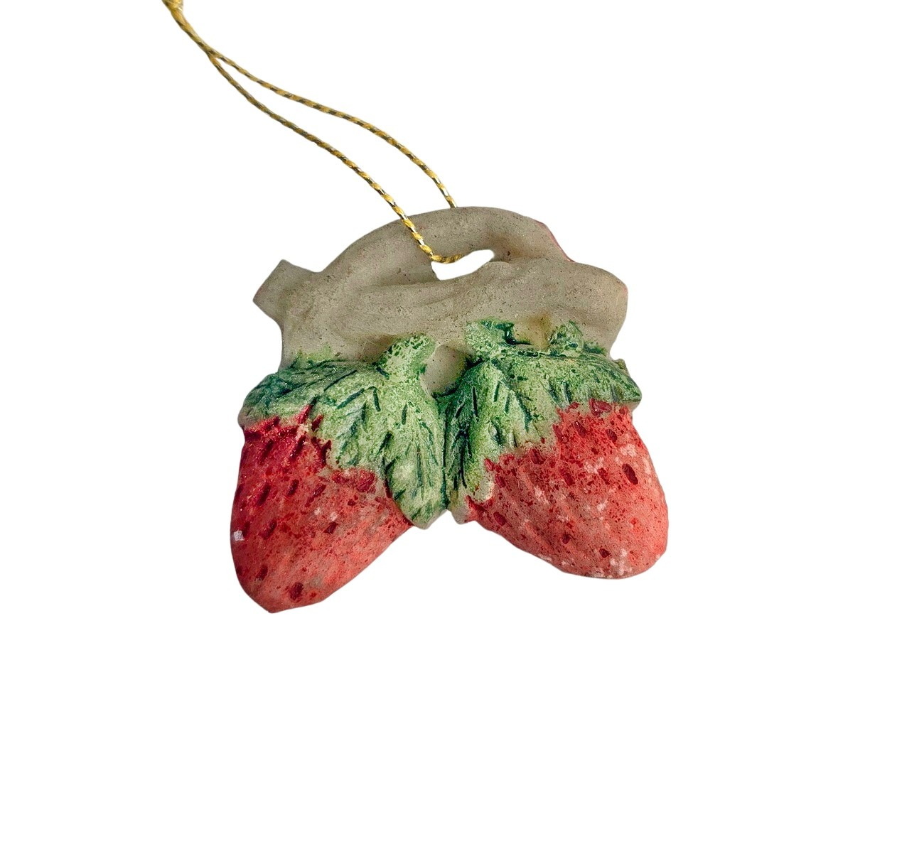 Dieser außergewöhnliche, sehr seltene Christbaumschmuck aus Tragant zeigt zwei Erdbeeren. Das kunstvolle Handwerk und die authentische Gestaltung machen sie zu einem einzigartigen Sammlerstück. Garantiert alt, keine Reproduktion – ein echtes Unikat aus der Zeit um 1880. Perfekt für eine hochwertige Sammlung oder als besonderes Dekorationsstück.