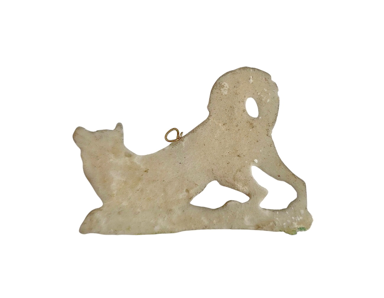 Dieser außergewöhnliche, sehr seltene Christbaumschmuck aus Tragant zeigt einen Hund. Das kunstvolle Handwerk und die authentische Gestaltung machen ihn zu einem einzigartigen Sammlerstück. Garantiert alt, keine Reproduktion – ein echtes Unikat aus der Zeit um 1900. Perfekt für eine hochwertige Sammlung oder als besonderes Dekorationsstück.