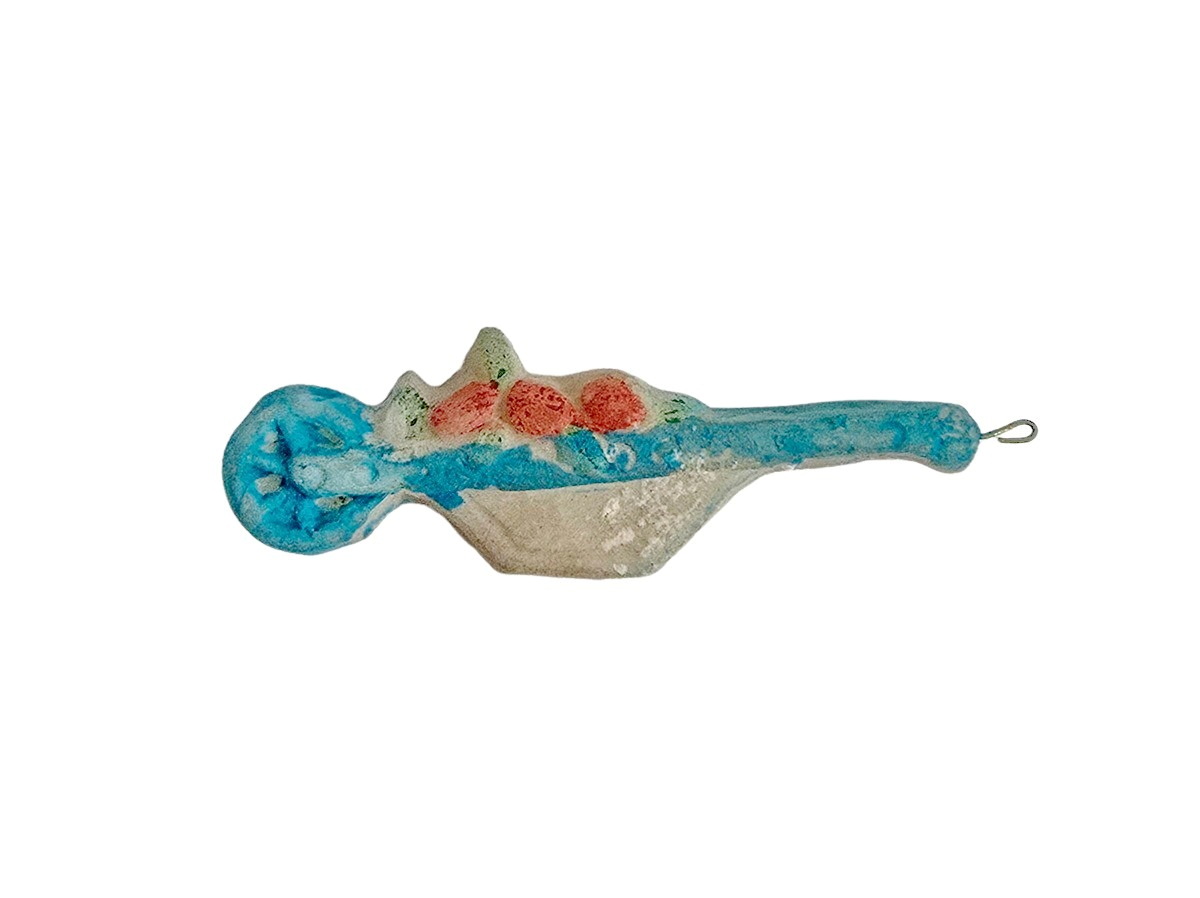 Dieser außergewöhnliche, sehr seltene Christbaumschmuck aus Tragant zeigt eine Schubkarre mit Früchten. Das kunstvolle Handwerk und die authentische Gestaltung machen ihn zu einem einzigartigen Sammlerstück. Garantiert alt, keine Reproduktion – ein echtes Unikat aus der Zeit um 1880. Perfekt für eine hochwertige Sammlung oder als besonderes Dekorationsstück.