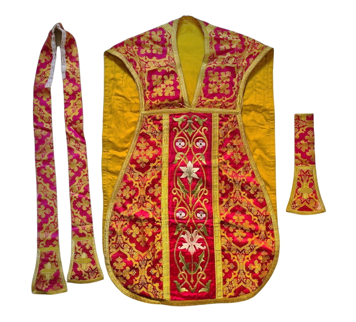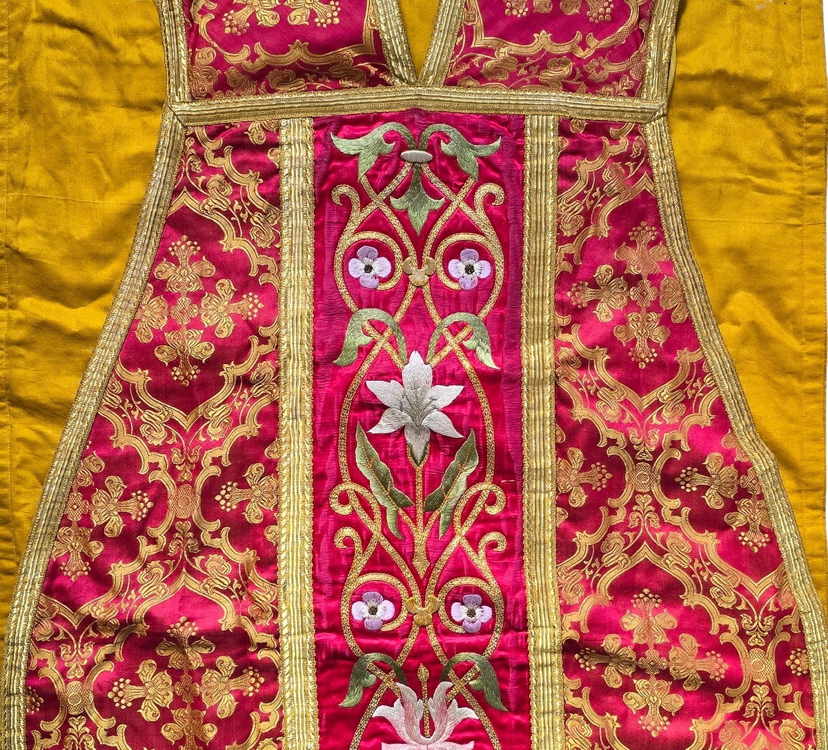 Weinrote Kasel, Ornat, Messgewand, Vestment, Pluviale um 1900
