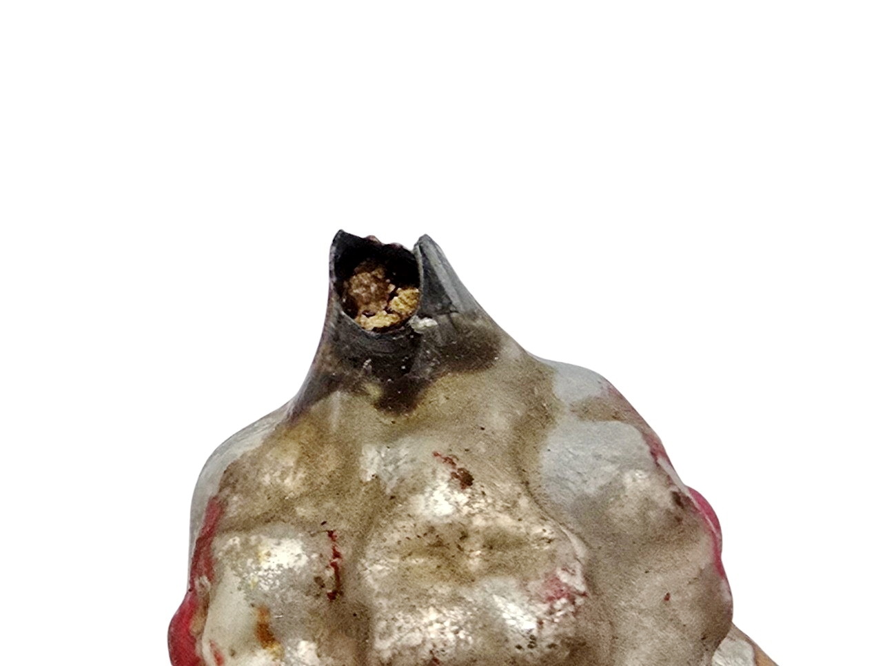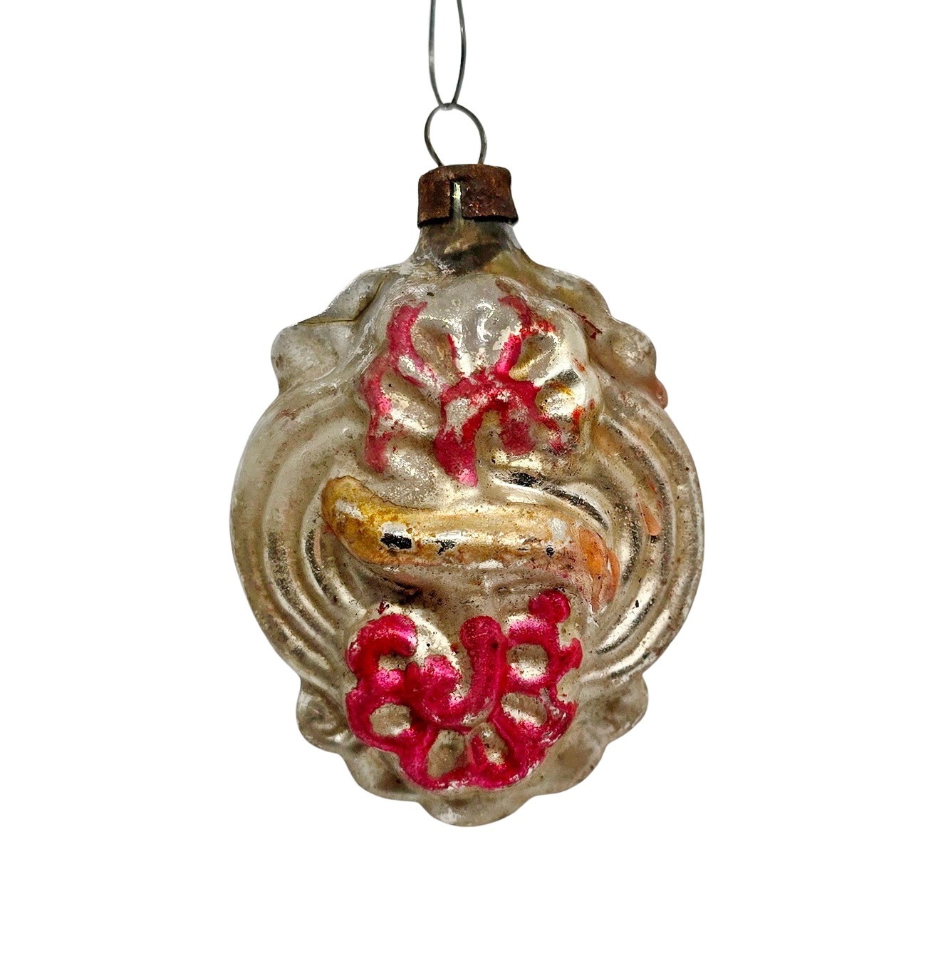 Inside the silvering is partly matt. Paint with some wear, condition is good. Chip under the cup, covered by the metal cup.