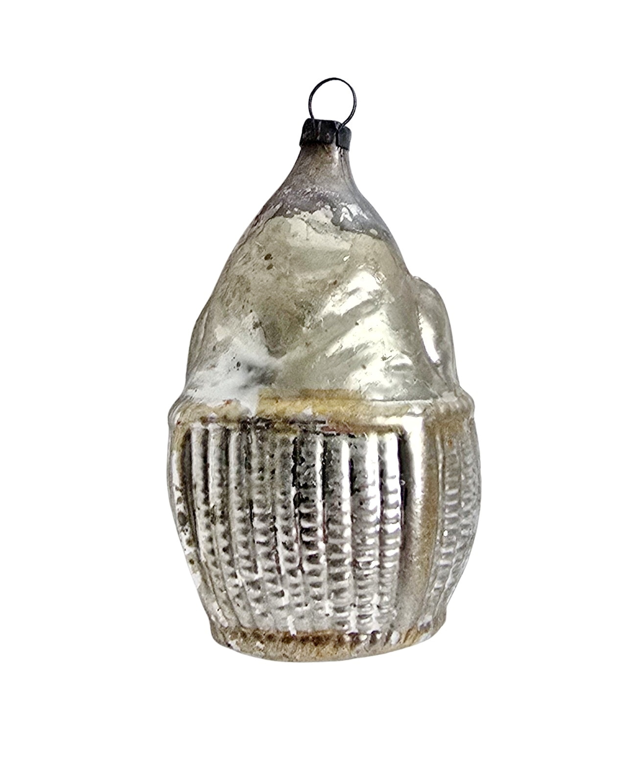 This extraordinary, very rare Christmas tree ornament from Lauscha depicts a santa in basket. The artistic craftsmanship and authentic design make it a unique collector's item. Guaranteed antique, not a reproduction — a truly unique piece from around 1920. Perfect for a high-quality collection or as a special decorative piece.