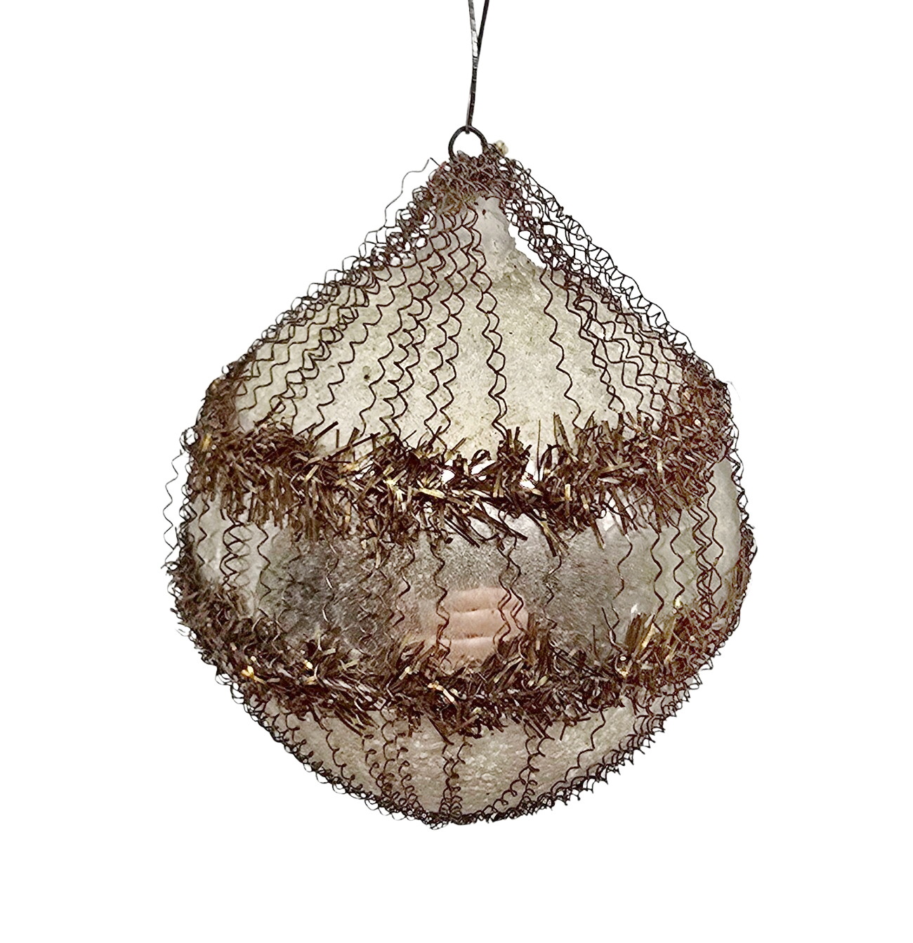 Material: Blown glass, painted, wire, gold colored tinsel, mica