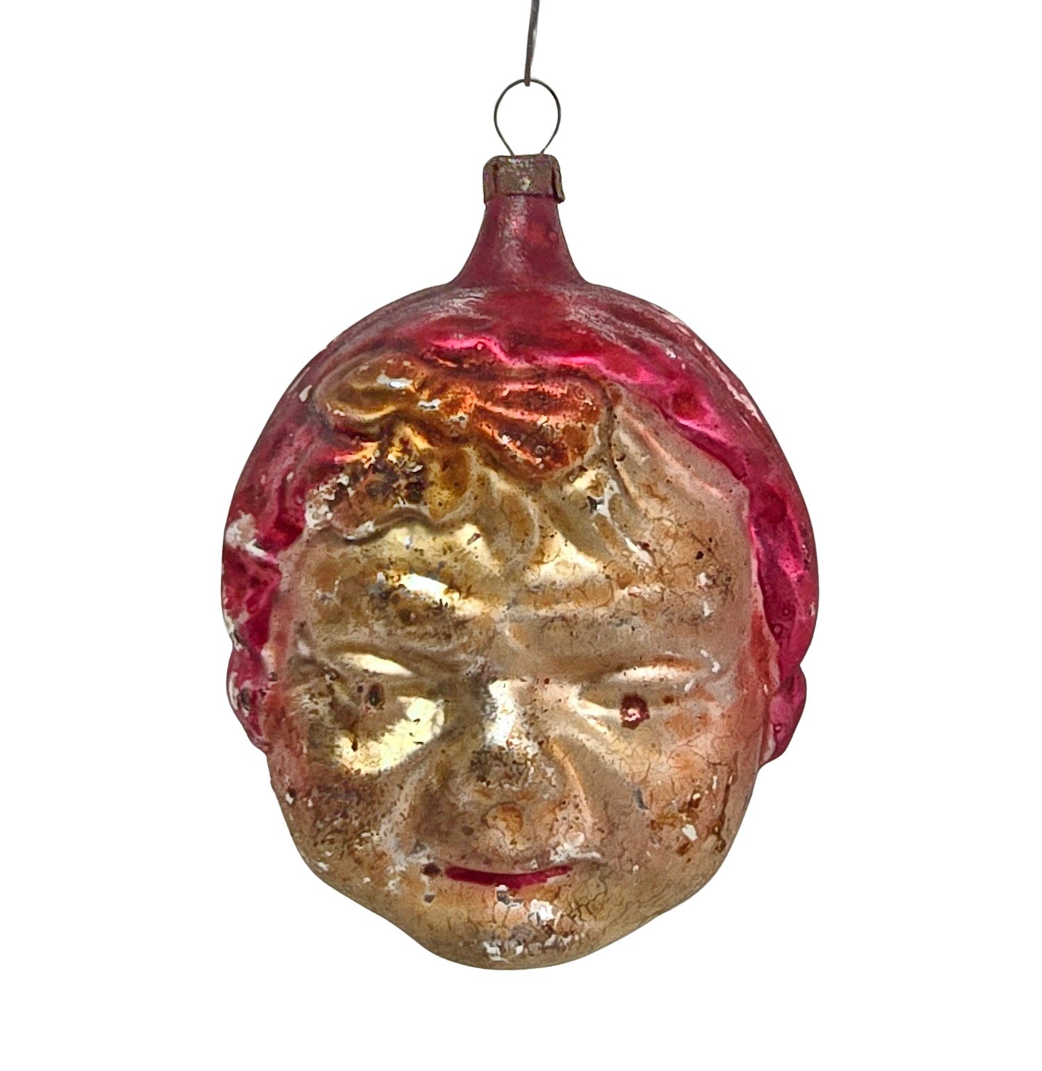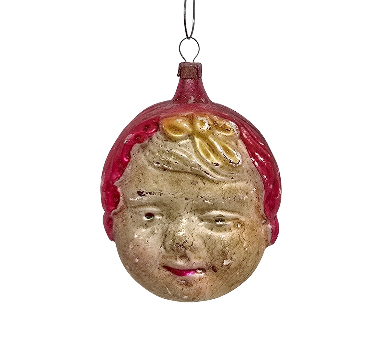 This extraordinary, very rare Christmas tree ornament from Lauscha depicts a girl's head, double sided, sad and happy. The artistic craftsmanship and authentic design make it a unique collector's item. Guaranteed antique, not a reproduction — a truly unique piece from around 1900. Perfect for a high-quality collection or as a special decorative piece.