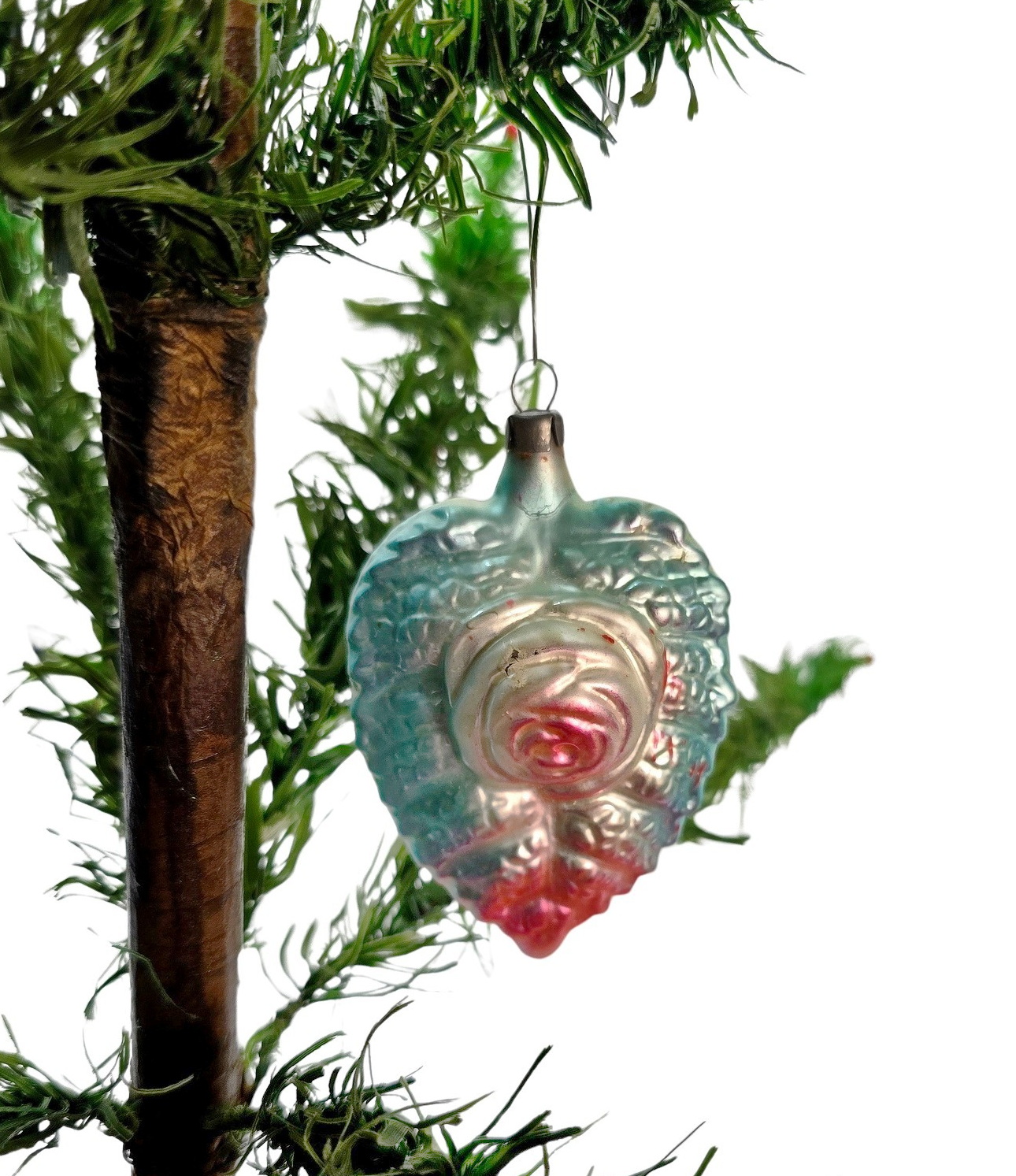 This extraordinary, very rare Christmas tree ornament from Lauscha depicts a kugel with rose flower. The artistic craftsmanship and authentic design make it a unique collector's item. Guaranteed antique, not a reproduction — a truly unique piece from around 1910. Perfect for a high-quality collection or as a special decorative piece.
