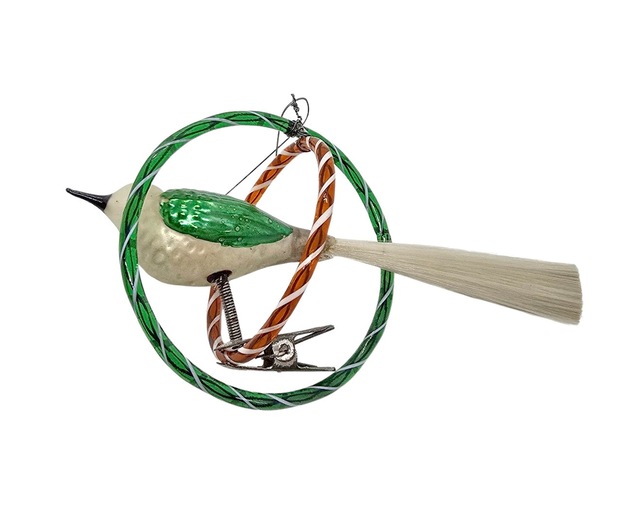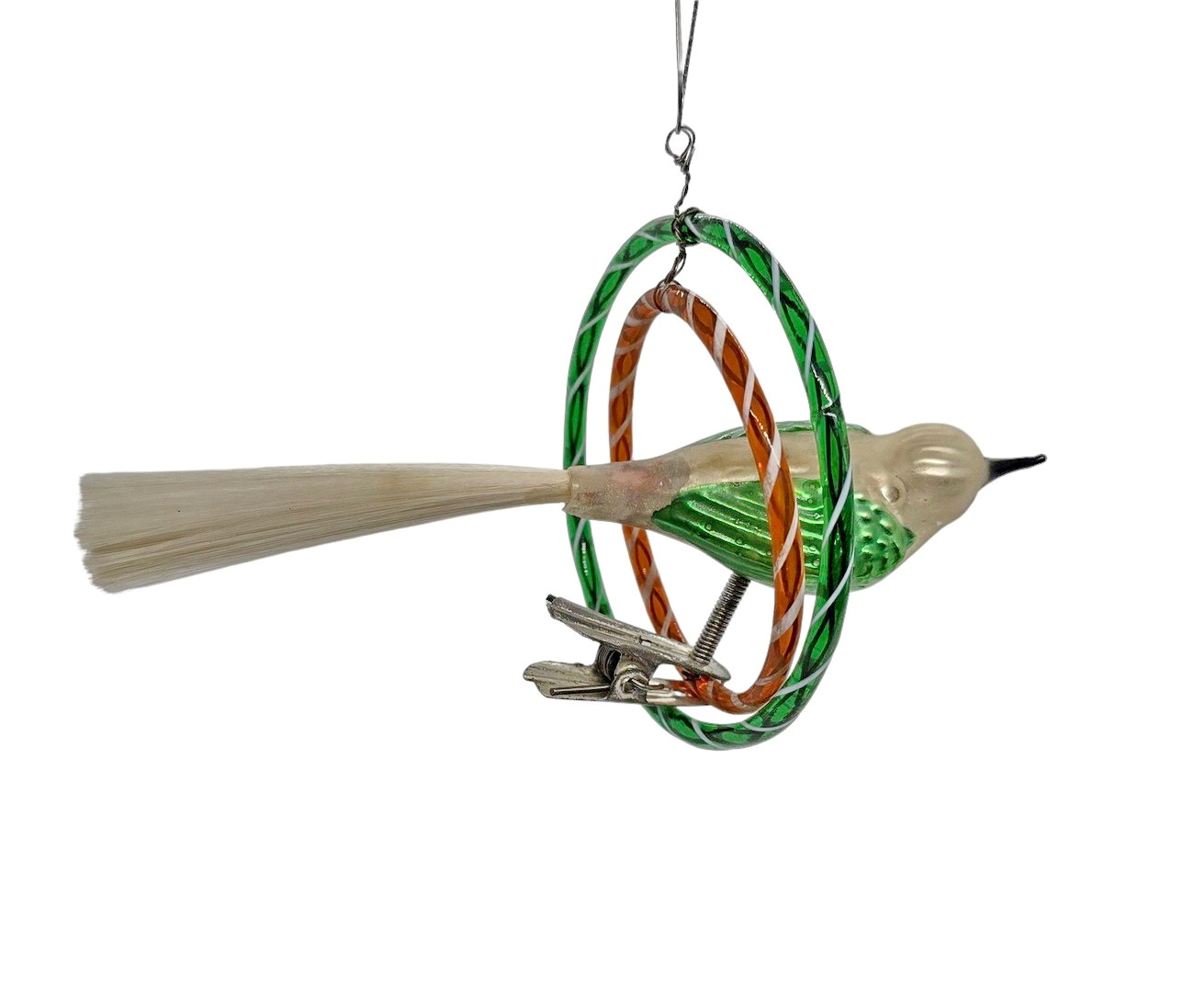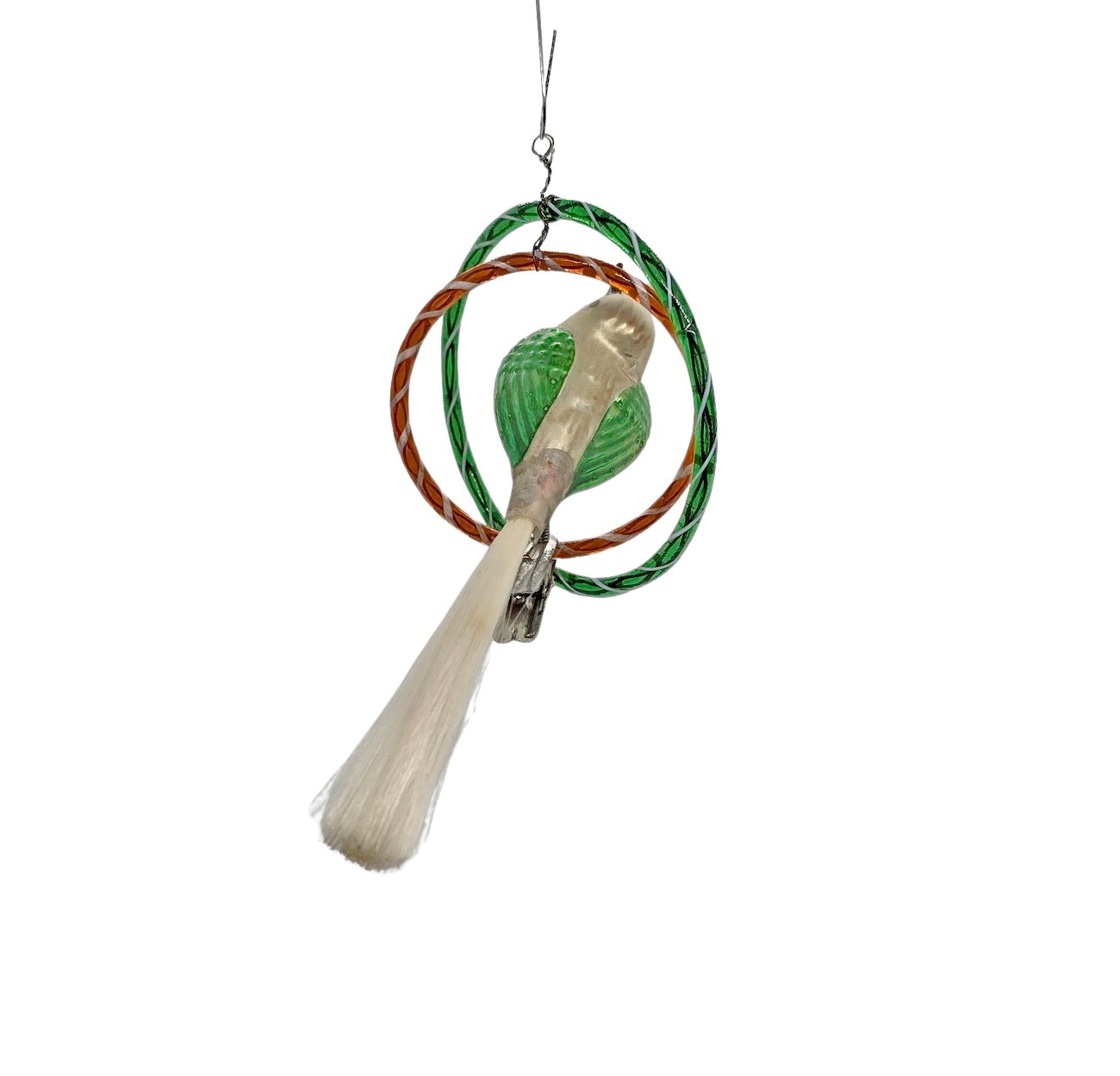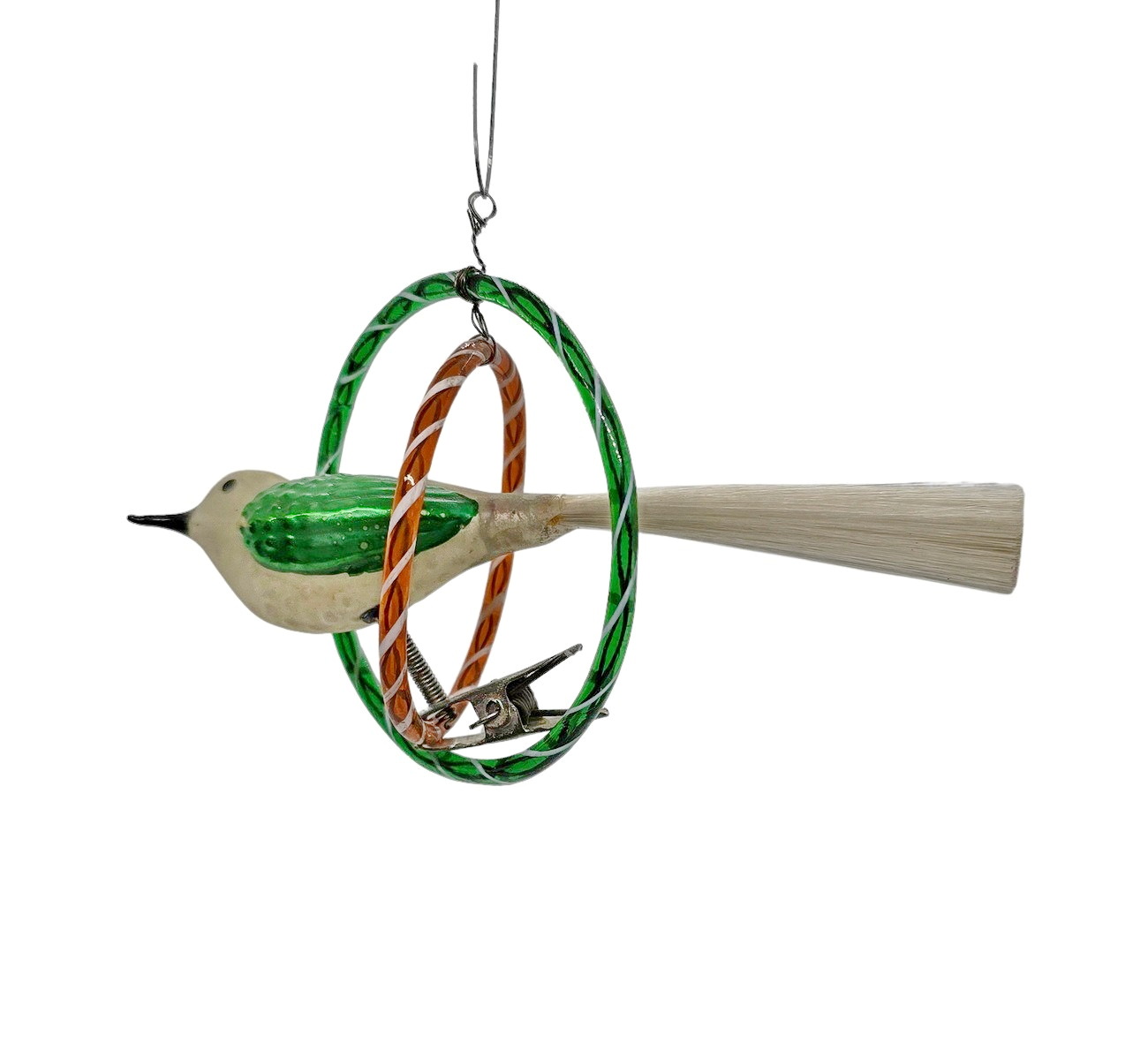 This extraordinary, very rare Christmas tree decoration from Gablonz features a glass ring with bird. The artistic craftsmanship and authentic design make it a unique collector's item. Guaranteed antique, not a reproduction — a truly unique piece from around 1930. Perfect for a high-quality collection or as a special decorative piece.