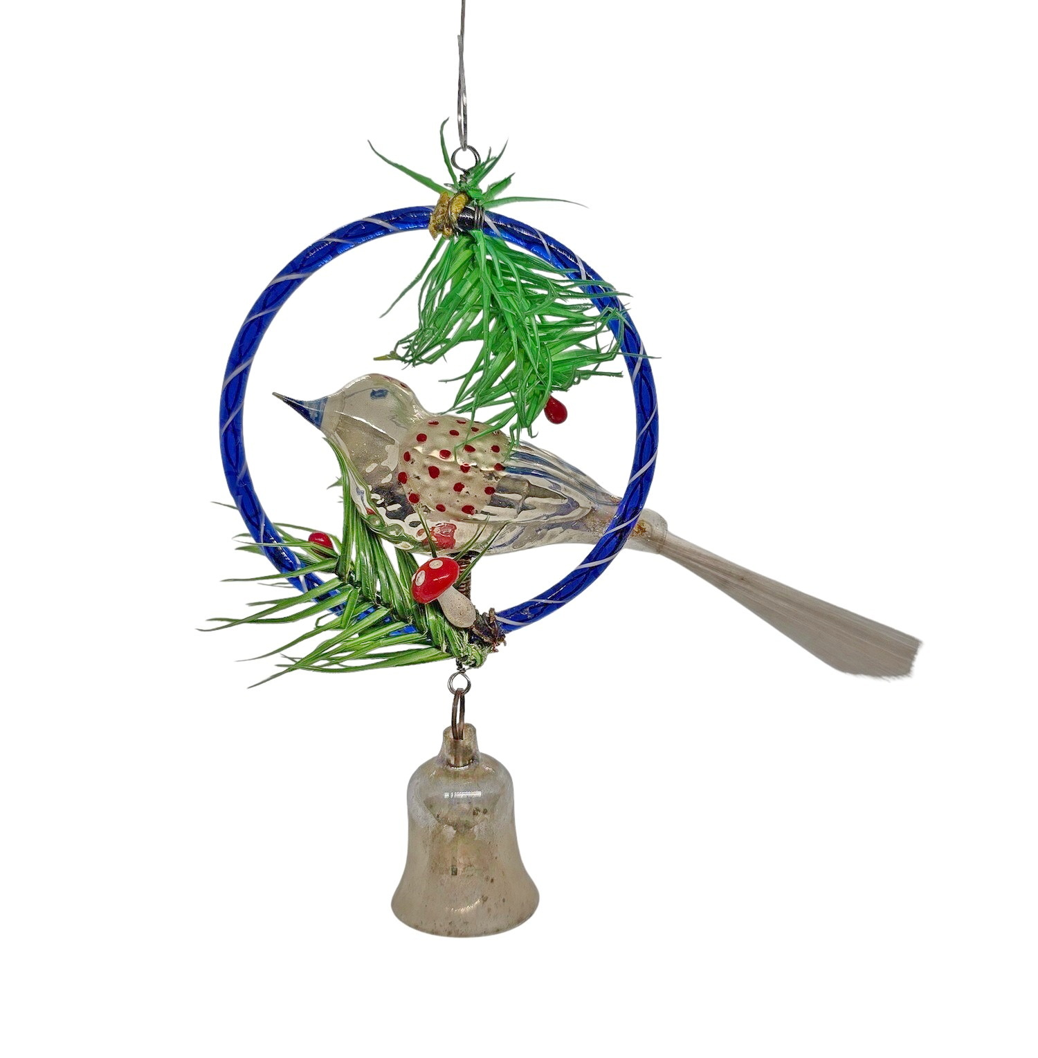 This extraordinary, very rare Christmas tree decoration from Gablonz features a glass ring with bird. The artistic craftsmanship and authentic design make it a unique collector's item. Guaranteed antique, not a reproduction — a truly unique piece from around 1930. Perfect for a high-quality collection or as a special decorative piece.