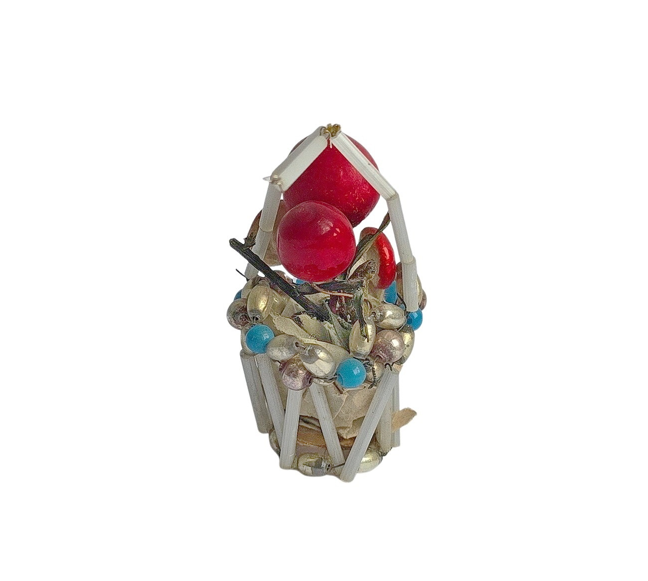 Material: Glass beads, wire, paper, spun cotton mushrooms, compo fruits