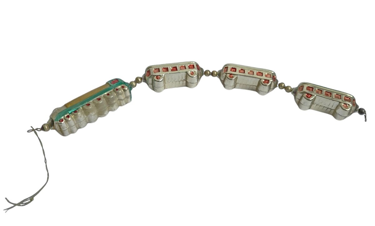 This extraordinary, very rare Christmas tree ornament from Gablonz depicts a train. The artistic craftsmanship and authentic design make it a unique collector's item. Guaranteed antique, not a reproduction — a truly unique piece from around 1930. Perfect for a high-quality collection or as a special decorative piece.