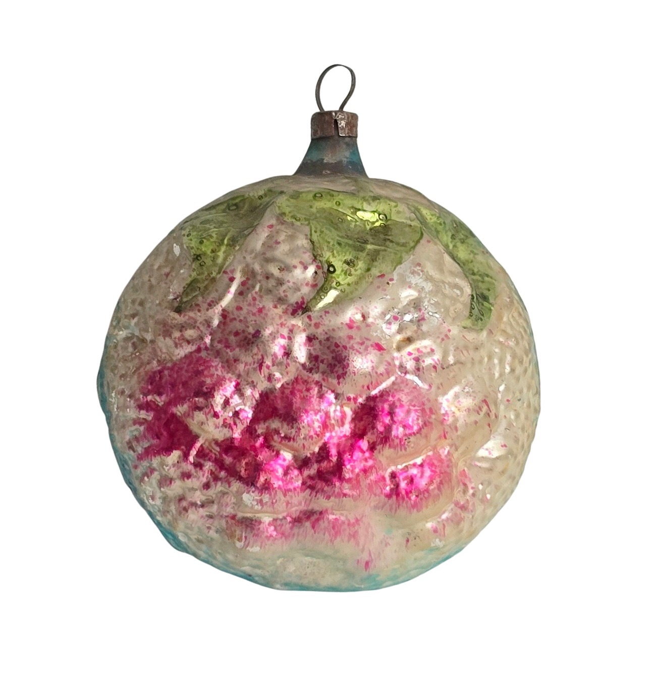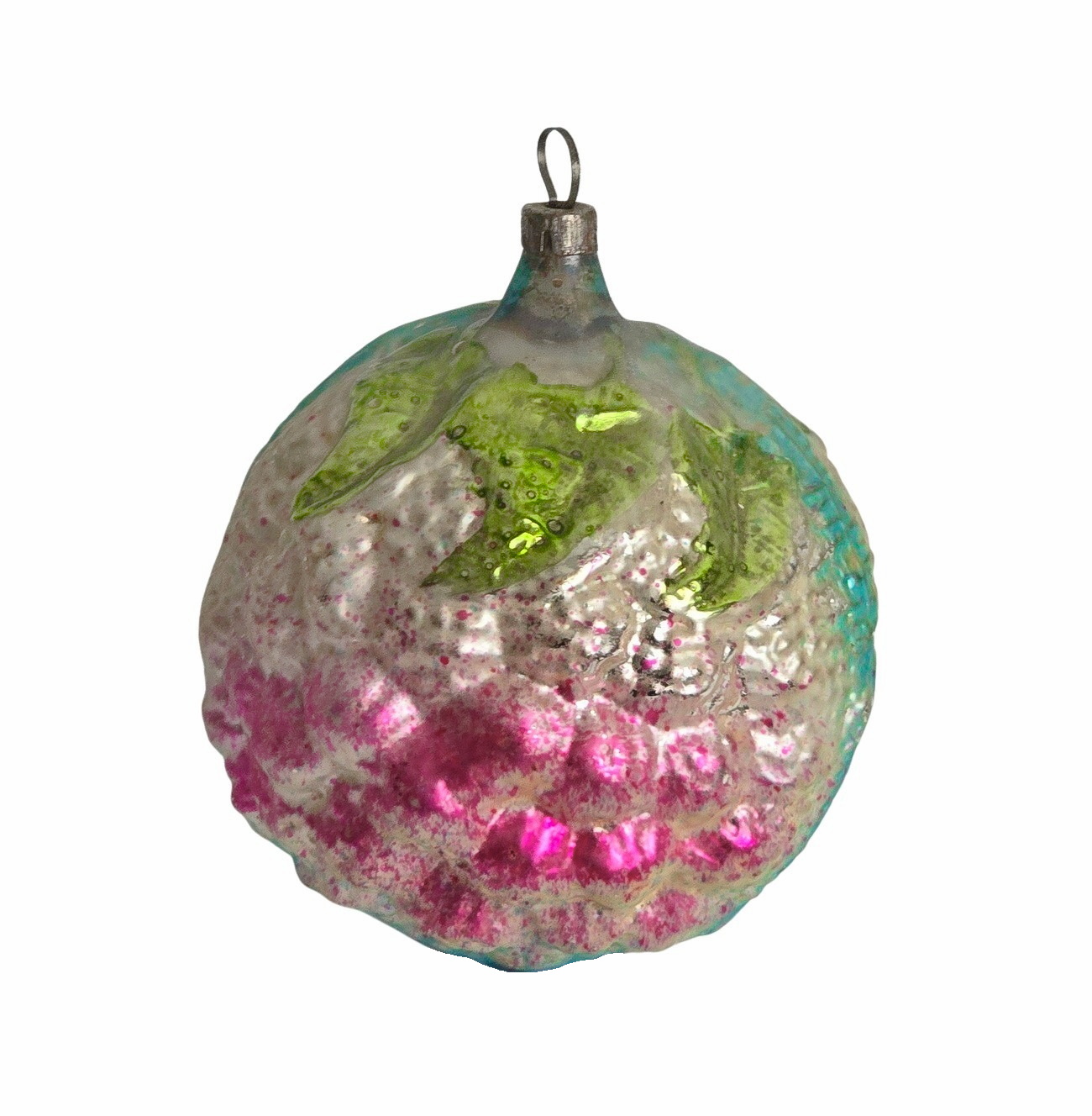 This extraordinary, very rare Christmas tree ornament from Lauscha depicts a kugel with fruits. The artistic craftsmanship and authentic design make it a unique collector's item. Guaranteed antique, not a reproduction — a truly unique piece from around 1910. Perfect for a high-quality collection or as a special decorative piece.