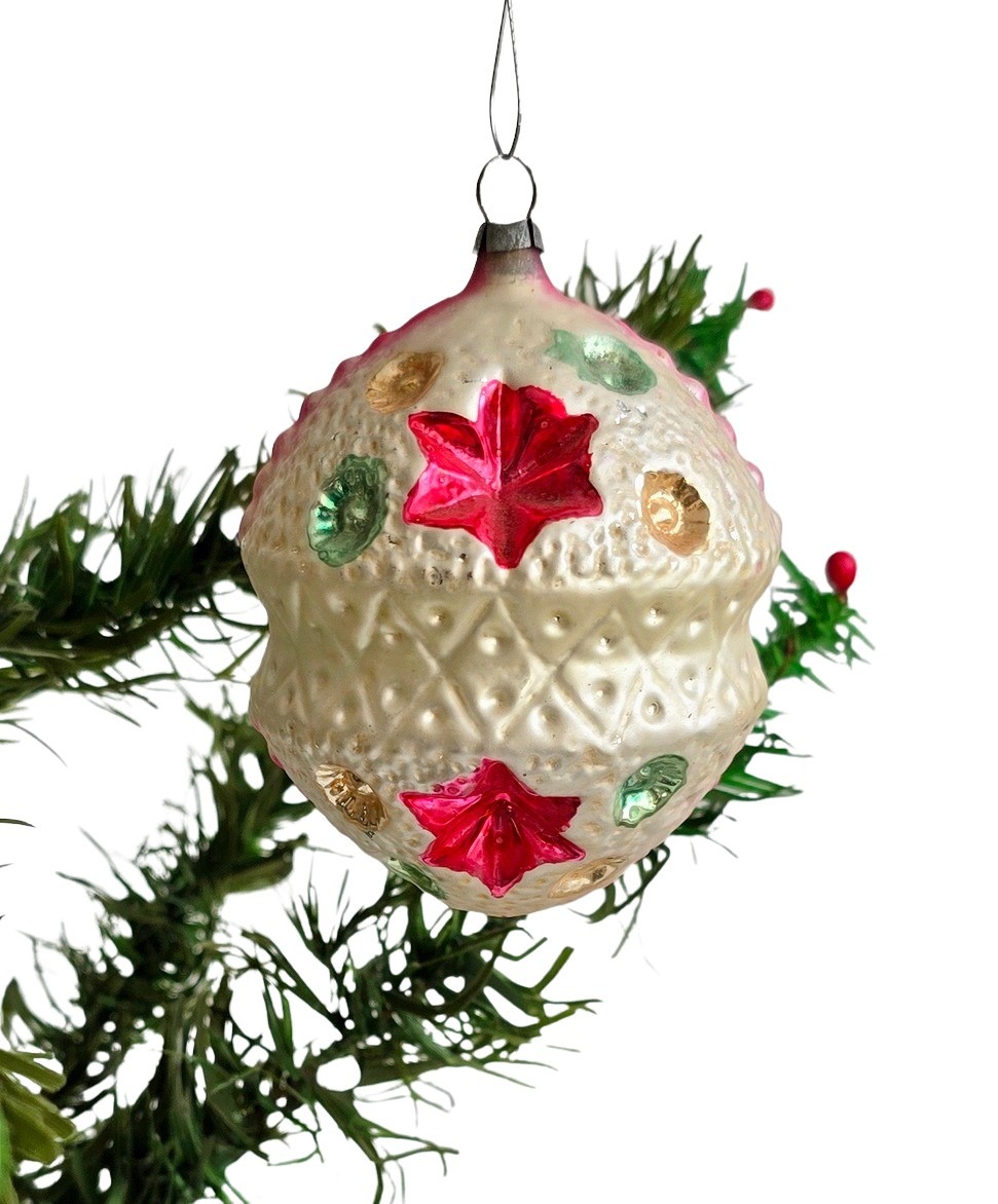 This extraordinary, very rare Christmas tree ornament from Lauscha depicts a kugel with indent stars. The artistic craftsmanship and authentic design make it a unique collector's item. Guaranteed antique, not a reproduction — a truly unique piece from around 1910. Perfect for a high-quality collection or as a special decorative piece.