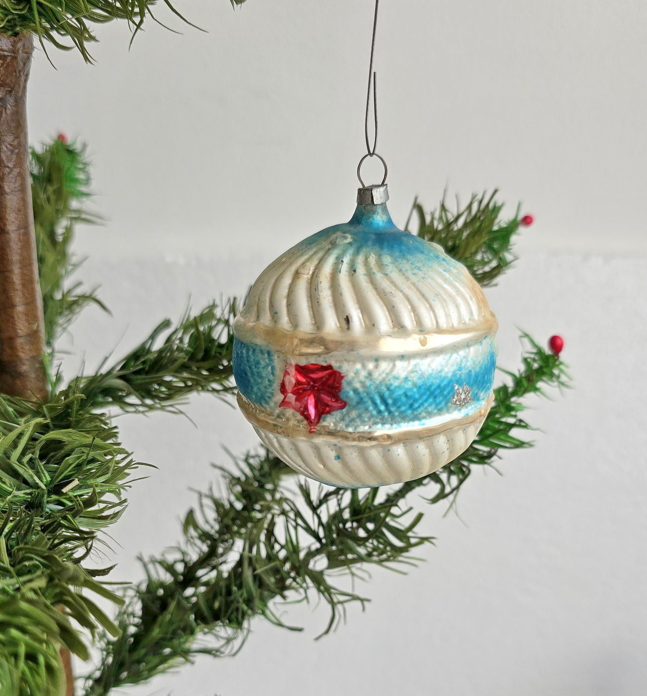 This extraordinary, very rare Christmas tree ornament from Lauscha depicts a kugel with indent stars. The artistic craftsmanship and authentic design make it a unique collector's item. Guaranteed antique, not a reproduction — a truly unique piece from around 1910. Perfect for a high-quality collection or as a special decorative piece.
