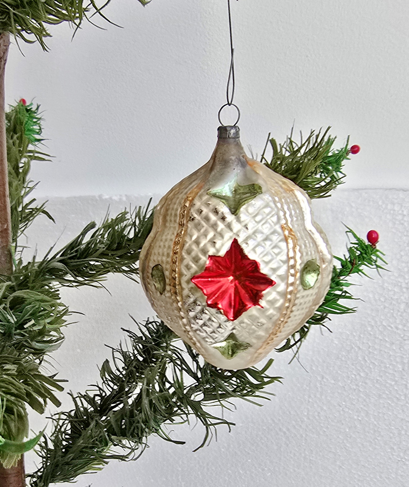 This extraordinary, very rare Christmas tree ornament from Lauscha depicts a kugel with indent star. The artistic craftsmanship and authentic design make it a unique collector's item. Guaranteed antique, not a reproduction — a truly unique piece from around 1910. Perfect for a high-quality collection or as a special decorative piece.