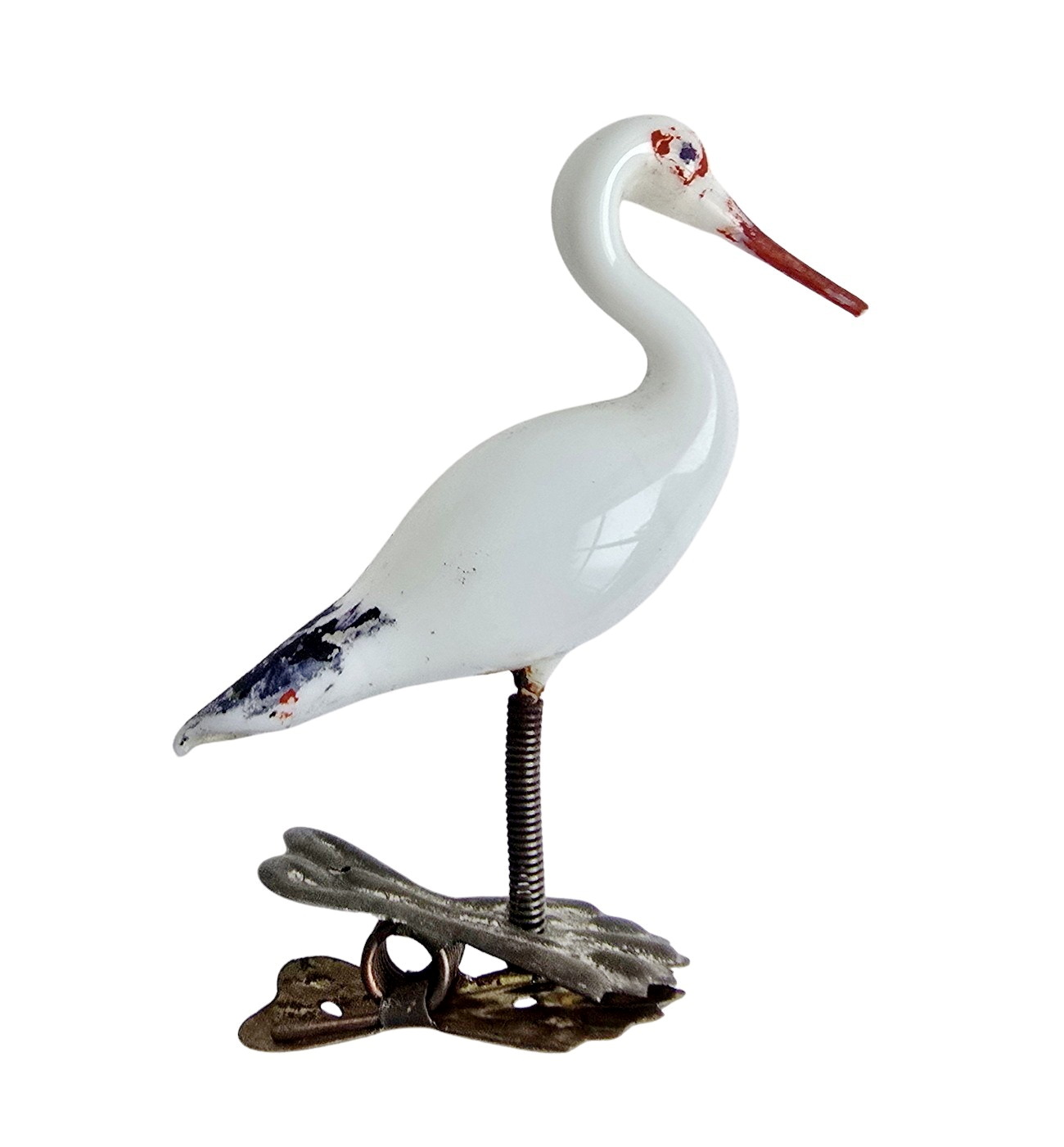 This extraordinary, very rare Christmas tree ornament from Lauscha depicts a stork on clip. The artistic craftsmanship and authentic design make it a unique collector's item. Guaranteed antique, not a reproduction — a truly unique piece from around 1920. Perfect for a high-quality collection or as a special decorative piece.