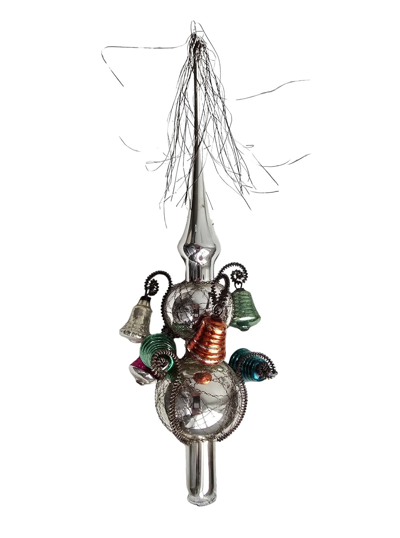 This extraordinary, rare christmas tree ornament from Lauscha depicts a wire wrapped tree topper. The artistic craftsmanship and authentic design make it a unique collector's item. Guaranteed antique, not a reproduction — a truly unique piece from around 1950. Perfect for a high-quality collection or as a special decorative piece.