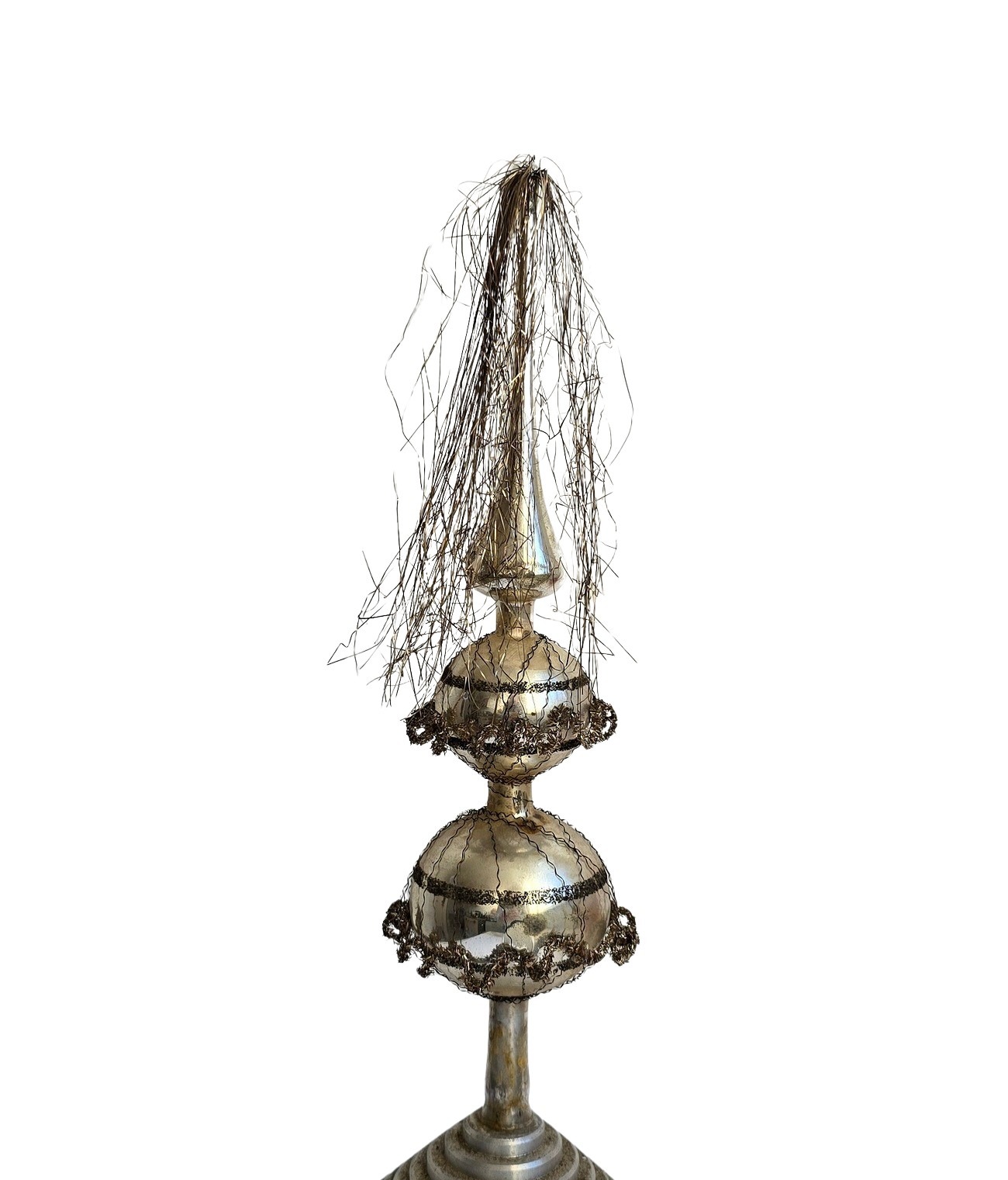 This extraordinary, very rare christmas tree ornament from Lauscha depicts a wire wrapped tree topper. The artistic craftsmanship and authentic design make it a unique collector's item. Guaranteed antique, not a reproduction — a truly unique piece from around 1930. Perfect for a high-quality collection or as a special decorative piece.
